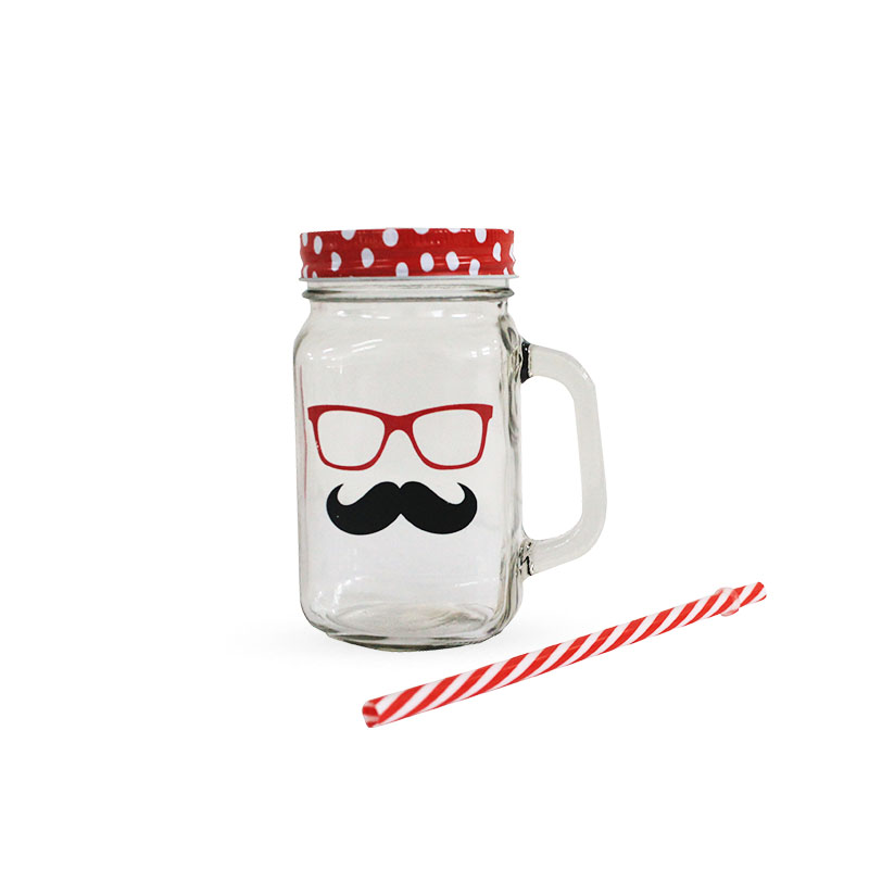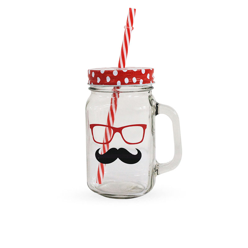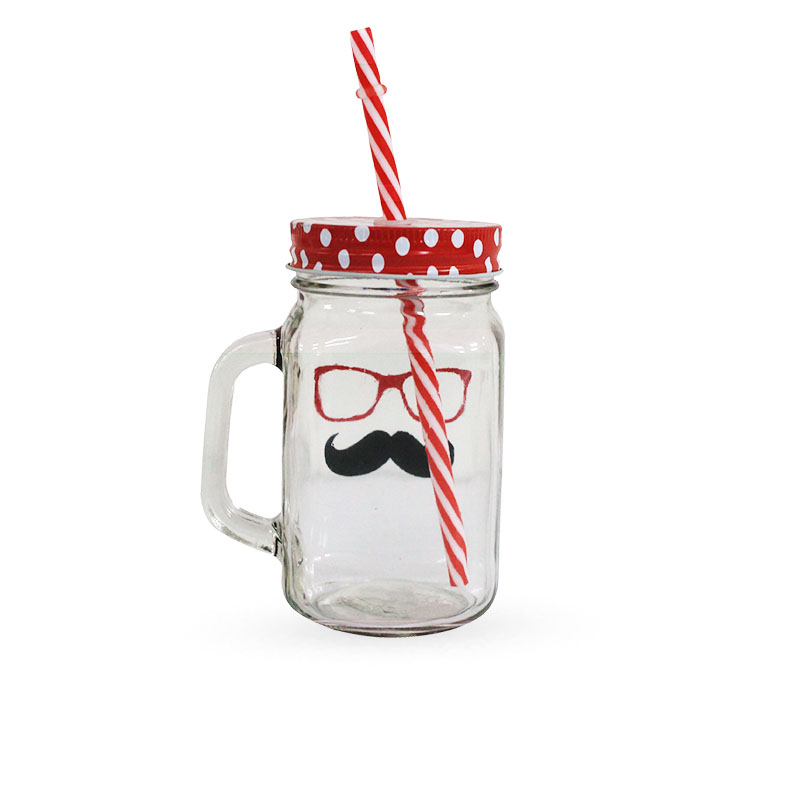 Fun and stylish MASON jar MUGS with handles and plastic straws perfect for any drink - 450ML.